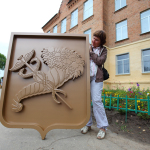 - Герб г. Харьков для фасада школы. Пластик, покраска.